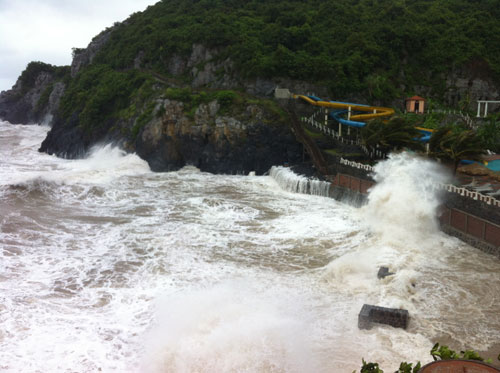 Sóng cao 3 đến 4 m ở trung tâm thị trấn Cát Bà