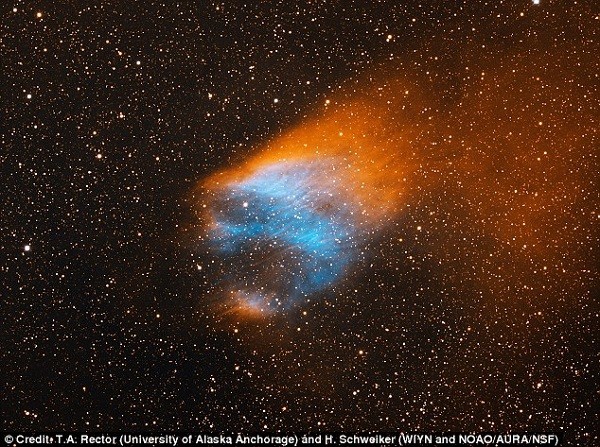 Hình ảnh tinh vân Sh2-68 trông giống như một chiếc đầu lâu khổng lồ đang la hét với mái tóc rực lửa, bay qua dải Ngân hà...