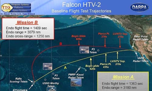 Sơ đồ đường bay tấn công của Falcon HTV-2.