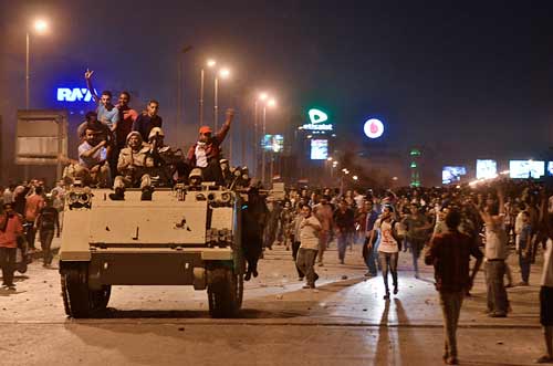 Xe quân sự của lực lượng an ninh Ai Cập tới các khu vực nổ ra xung đột tại quảng trường Tahrir ngày 5/7.