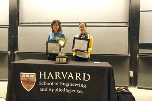 Hoàng Linh và Quỳnh Chi nhận giải tại ĐH Harvard. .
