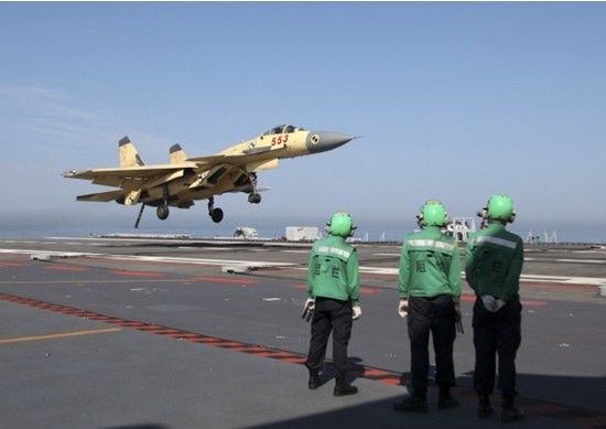 Máy bay chiến đấu J-15 cất/hạ cánh thử trên tàu sân bay Liêu Ninh
