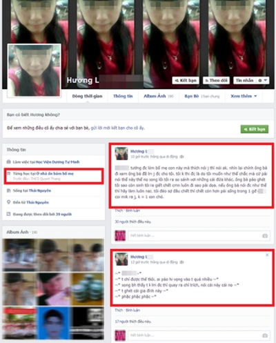 Cô bạn Hương L - người được cho là có hành động lăng mạ bố mẹ trên FacebookCô bạn Hương L - người được cho là có hành động lăng mạ bố mẹ trên Facebook.