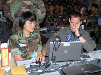 Trao đổi giữa sĩ quan Mỹ và Hàn Quốc trong cuộc tập trận Ulchi Freedom Guardian 2008. (www.usfk.mil/usfk) |