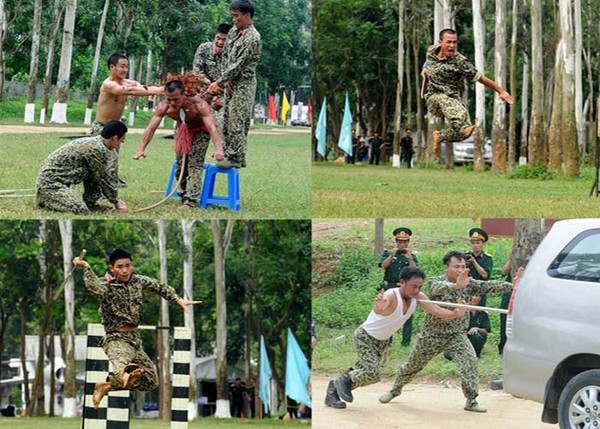 Những h́nh ảnh của các sĩ quan đặc công VN tŕnh diễn kỹ, chiến thuật chống khủng bố vào chiều 11/7, tại Trường Sĩ quan Đặc công, Bộ Tư lệnh Đặc công đă chính thức xuất hiện trên báo chí TQ.