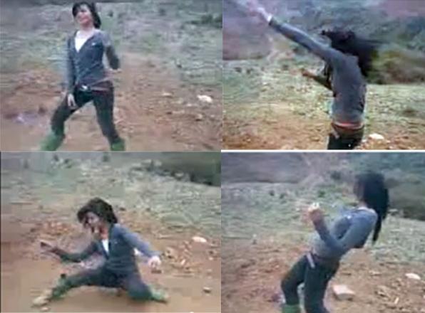 Tại sân khấu là một bãi đất ven đồi, xung quanh là cỏ dại và đồi núi. Cô gái thể hiện rất điệu nghệ động tác ưỡn ngực, xoay, đá chân, lắc hông…theo tiếng nhạc. Đoạn clip dài gần 8 phút và dừng lại khi cô gái vẫn còn lắc theo tiếng nhạc.