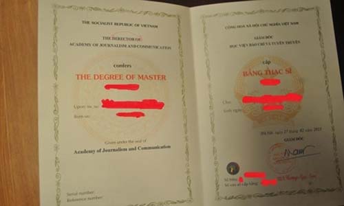 Bằng thạc sĩ cũng sai lỗi quốc huy.