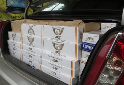 Trên 10.000 gói thuốc lạ lậu chất đầy trong xe của Thanh. Ảnh: Trà Giang