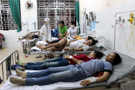 Do số lượng công nhân nhập viện cùng lúc quá nhiều nên bệnh viện không đủ giường bệnh, phải dùng chiếu để cấp cứu công nhân ngay tại hành lang của bệnh viện.