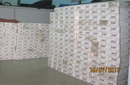 Tang vật là thuốc lá lậu bị công an thu giữ