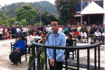 Phiên ṭa sơ thẩm được TAND tỉnh Hà Giang xét xử lưu động tại sân UBND huyện Hoàng Su Ph́, thu hút hàng ngàn người dân tham dự. Tại phiên ṭa, bị cáo ăn năn chỉ v́ rượu đă làm mất nhân tính và xin giảm nhẹ h́nh phạt, gia đ́nh bị hại tiếp tục yêu cầu bồi thường thêm 50 triệu nữa, bị cáo cũng bằng ḷng. Tuy nhiên, xét hành vi của bị cáo quá côn đồ, hung hăn, quyết tâm phạm tội đến cùng nên TAND tỉnh Hà Giang đă xử phạt Nông Đức Thướng mức án 17 năm tù, buộc bị cáo phải bồi thường thêm cho bị hại 50 triệu đồng.
