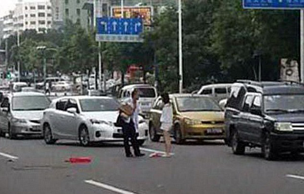 Nhiều người đi đường cảm thấy khó hiểu vì hành vi này nên đã đứng lại xem khiến giao thông của đoạn đường bị ách tắc một lúc lâu.