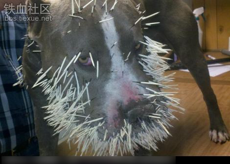 - Đó là những chú chó đáng thương không may bị những chiếc lông nhím "tấn công" và giăng kín mặt.