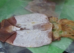 Mở gói mực ra vẫn có mùi đặc trưng của mực khô nên chị không hề nghi ngờ gì. Chỉ tới khi nướng lên mới phát hiện thấy mùi khét khác lạ. Khi đưa số mực còn lại ra xem kỹ thì anh thấy có nhiều dấu hiệu bất thường.