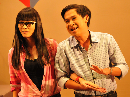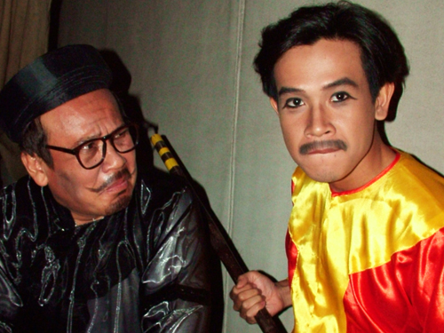 NSƯT Giang Châu và con trai - nghệ sĩ Thế Sơn trong vở Ngao Sò Ốc Hến (ảnh: Thanh Hiệp).