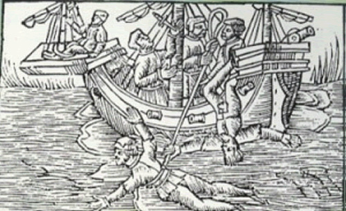 Đây là một dạng tra tấn phổ biến với các thủy thủ trên biển. Nạn nhân sẽ bị buộc vào dây và thả xuống dưới thân tàu. Sau đó, họ bị kéo từ mạn trái sang mạn phải tàu, hoặc bị kéo dọc theo sống tàu. Nếu kéo nhanh, nạn nhân sẽ bị cứa đứt da thịt, mất tứ chi… Nếu kéo chậm, người bị tra tấn bị chết đuối do ở lâu dưới nước. Kiểu tra tấn này từng được cho phép thực hiện một cách hợp pháp ở Hải Quân Hà Lan. Hình thức này được ghi nhận đầu tiên trong pháp lệnh của Hà Lan năm 1560 và được bãi bỏ không chính thức vào năm 1853.