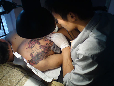 Khách phải kiên trì và chịu đau đớn mới có hình xăm đẹp