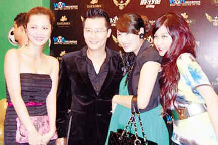 Ca sĩ Quế Vân mang bầu năm 2010 (váy xanh). Ảnh: TL.