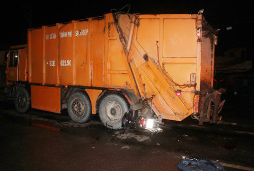 Hai thanh niên điều khiển xe máy chạy trong đêm tối, do bị hạn chế tầm quan sát nên đã tông vào xe chở rác và tử vong tại chỗ.