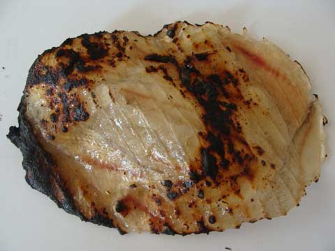 Gần đây (8/2013), khi có các thông tin về cá mực làm từ nhựa, mì nhựa, thịt bò kho làm từ nhựa v.v. thì nhà tôi mới bắt đầu nghi ngờ về gói quà quê này. Đem ra xem cẩn thận thì, cả nhà mới bất ngờ nhận ra loại cá ép miếng tưởng là tạo thành từ các miếng cá lát mỏng, phơi khô có thể là…nhựa 100%.Loại cá ép nhựa này được làm khá tinh vi, nếu không đốt thử thì không thể nhận ra, nó giống hệt như được tạo thành từ các lát cá nhỏ. Bề mặt miếng nhựa, được điểm các vệt màu trắng bạc như da cá biển, cùng các vệt màu vàng đậm như cá phơi “được nắng”.
