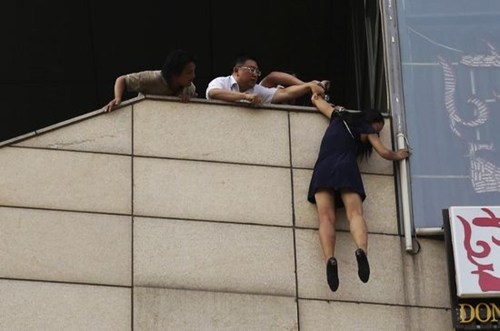 Default Trung Quốc: Dùng còng tay cứu thiếu nữ tự tử