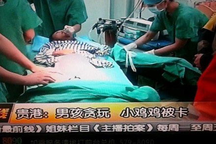 Các bác sĩ Trung Quốc phẫu thuật giải phóng của quý của cậu bé ra khỏi vòng bi.