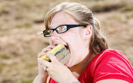 Để thỏa mãn cơn nghiện ăn kỳ lạ, chị Pearce thường làm giả bánh sandwich bằng miếng bọt rửa chén bát và cát rồi ăn một cách ngon lành.