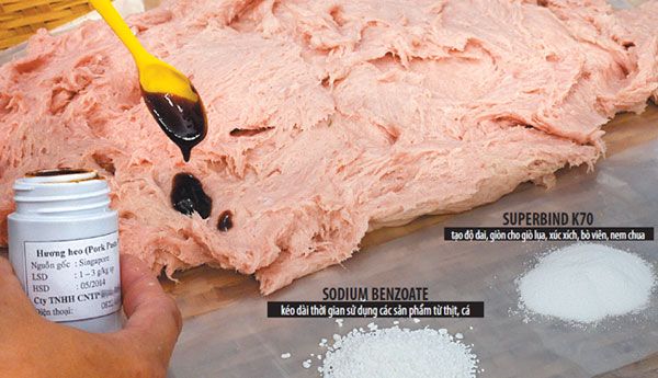 Nhiều thứ hóa chất được sử dụng trong quá trình làm chả, giò lụa, nem, cá viên...