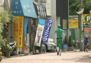 Người đàn ông có dáng mảnh khảnh 27 tuổi đă trải qua 3 tháng làm siêu nhân ở bến xe điện ngầm phía Tây Tokyo. Giống như nhiều nơi trong thành phố, bến xe không có cả thang máy lẫn thang cuốn và những bậc thang th́ mờ tối. Anh Tadahiro Kanemasu nói: “ Những người Nhật Bản thấy khó khăn khi nhận sự giúp đỡ của người khác, họ cảm thấy không thoải mái, v́ vậy chiếc mặt nạ sẽ có ích cho tôi.”Động lực để anh hành động đến từ lũ trẻ anh gặp khi làm công việc hàng ngày của ḿnh tại một cửa hàng rau quả, công việc cũng gợi nhớ tới màu sắc trang phục mà anh dùng. Anh mặc bộ quần áo “quyền lực” của siêu nhân Xanh, thêm với những phụ kiện mua từ một cửa hàng giảm giá với 41 USD mỗi chiếc.