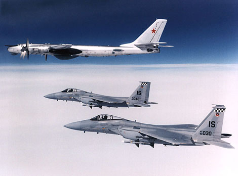 Theo hăng thông tấn Kyodo, 2 máy bay ném bom chiến lược Tu-95 đă bay vào không phận Nhật Bản ở khu vực đảo Okinosima thuộc đơn vị hành chính Fukuoka. Lực lượng Pḥng vệ trên không Nhật Bản (JASDF) đă báo động, lệnh cho các máy bay tiêm kích F-2 cất cánh đánh chặn.