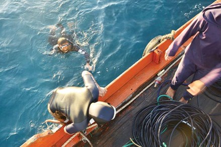 Con tàu chở cổ vật đang được khai thác tại Quảng Ngãi được phát hiện bởi chính những ngư dân săn ngầm làng chài Bình Châu.