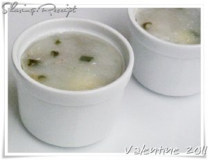 – Tỷ lệ : 4 cup nước súp gà, 1/2 cup bột năng, 1 1/2 cup bột gạo, hòa đều, tránh không bị vón cục, thêm 2 muỗng súp dầu ăn, 4 cafe hạt nêm, ít muối, 1 cafe đường, cuối cùng, cho lên bếp, để lửa nhỏ, khuấy đều tay cho mịn, tắt bếp.