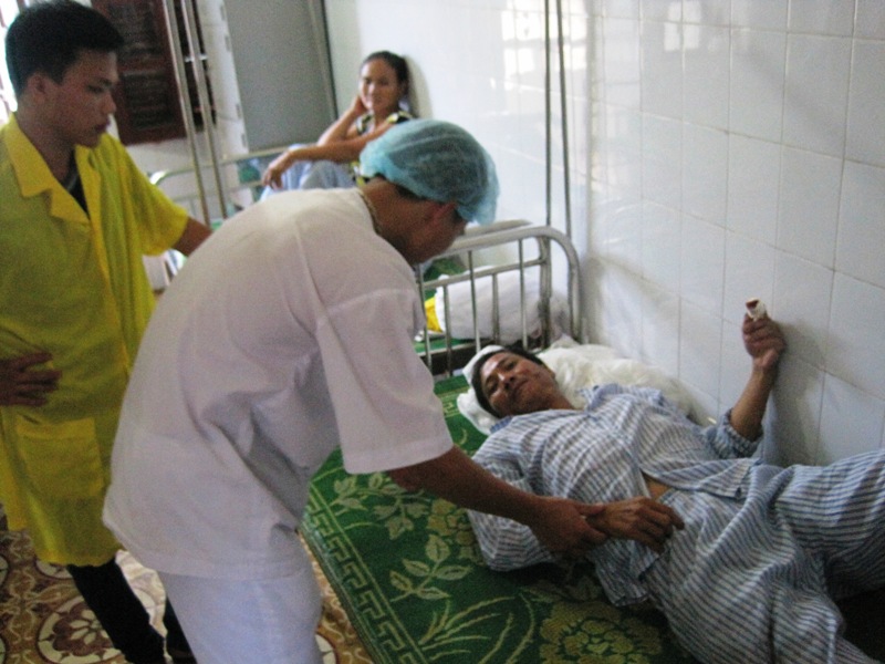 Anh Nguyễn Văn Quang may mắn thoát chết đang được điều trị tại Bệnh viện Đa khoa Hà Trung.