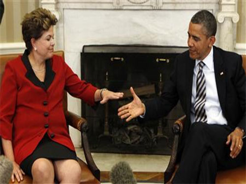 Tổng thống Mỹ Barack Obama bắt tay với Tổng thống Brazil Dilma Rousseff