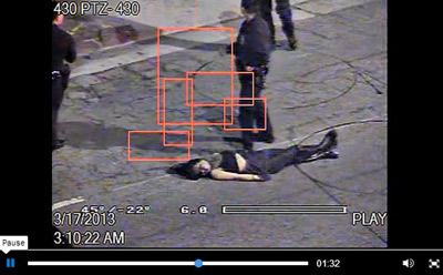 Băng ghi h́nh do luật sư của nạn nhân, ông Arnoldo Casillas, đưa cho tờ báo xem không cho thấy tại sao bà bị văng ra khỏi xe, nhưng thấy bà nằm trên đường, mặt bị sưng và đầy máu, xung quanh là cảnh sát.