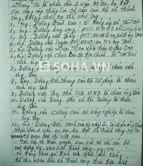 “Nhưng vụ việc xảy ra ở xã Thành Công vừa rồi khiến người dân chúng tôi rất bất bình. Ông Dương Đình Sáu là người đứng đầu một xã, lẽ ra phải công minh, hết lòng phục vụ nhân dân nhưng đằng này lại vi phạm nghiêm trọng quy chế dân chủ.