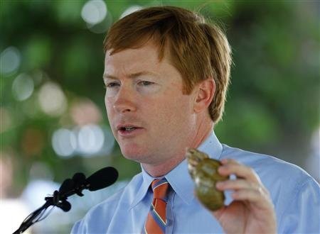 Ông Adam Putnam, quan chức phụ trách ngành nông nghiệp của bang Florida, cầm một con ốc sên khổng lồ tại thành phố Miami hôm 29/8. Ảnh: Reuters.