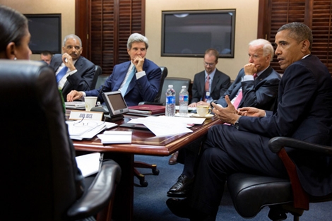 Tổng thống Mỹ Barack Obama họp với các quan chức chóp bu bàn mưu tính kế đánh Syria.