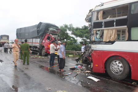 Được biết, xảy ra vụ tai nạn, trên xe khách chở khoảng gần 15 hành khách đang trên đường đi vào TP Hồ Chí Minh thì gặp nạn. Anh Lê Công Trung - phụ xe khách giường nằm vẫn chưa hết bàng hoàng sau vụ tai nạn, kể lại: “Lúc xảy ra tai nạn trời mưa to. Chúng tôi đang ngồi nói chuyện thì bỗng dưng chiếc xe tải từ bên kia đường lao sang, đâm thẳng vào. Sau khi bị choáng một lúc tôi tỉnh dậy thì thấy nhiều người ngồi trong xe bị thương do va đập vào xe”.