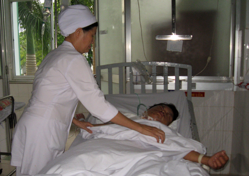 Anh Thìn cấp cứu tại bệnh viện. Ảnh: Thu Bồn.