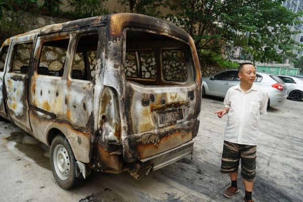4 giờ sáng hôm qua 9/9 một người đàn ông quê Trùng Khánh đă phóng hỏa đốt 3 chiếc ô tô đậu trong một con hẻm ở phố Phi Nga thành phố Liễu Châu, sau đó tự ra đồn cảnh sát tự thú.