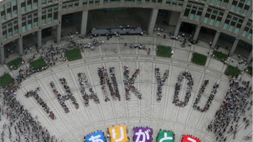Dân Tokyo xếp hàng thành chữ để cảm ơn chính quyền Tokyo giành quyền đăng cai Olympics 2020