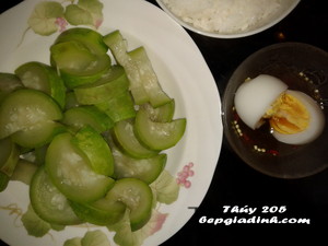 • Bầu chấm cùng nước mắm dầm trứng vịt luộc.