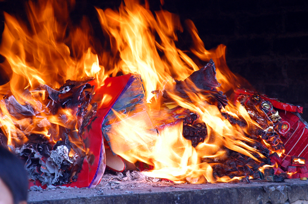 Vừa đi phiên chợ sáng về, vợ chồng ông Song tá hoả vì ông nội đã đốt sạch 900 USD vốn định dùng để mua xe máy cho con trai.Sáng 14/9, vợ chồng ông Vũ Ngọc Song quê ở xã Tân Lập, huyện Vũ Thư, tỉnh Thái Bình vẫn dậy từ rất sớm để dọn hàng ra chợ bán. Trước khi đi, ông Song có đặt xếp tiền gồm 900 USD trên bàn thờ để phúng lấy may với dự định gần trưa sẽ đi mua xe máy cho con trai. Khi con trai là Vũ Ngọc Sơn, hiện là sinh viên năm 2 trường Đại học Mỏ - Địa chất mò tay lên bàn thờ để lấy tiền đưa cho bố thì phát hiện không còn xu nào. Đúng lúc đó, ông nội cho biết tưởng là tiền vàng mã nên mang đi hoá rồi… Cả nhà chết lặng, riêng bà Mến (vợ ông Song) đã ngất xỉu tại chỗ vì tiếc của.