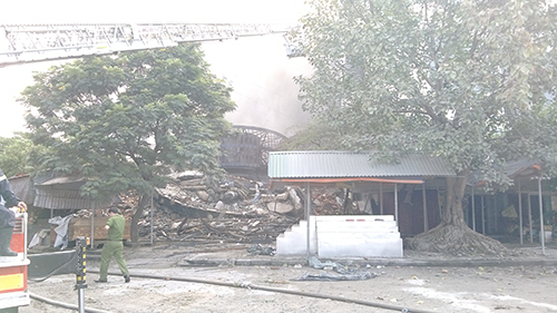 Thông tin mới nhất, đến thời điểm 13 giờ 30 phút, ngọn lửa vẫn âm ỉ cháy.