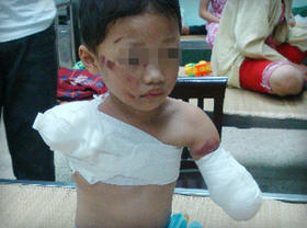 Do nghịch ngợm thò tay vào chuồng gấu, một bé trai 5 tuổi đã bị một gấu nuôi lấy mật cắn nát cả 2 cánh tay. Hiện tại bé đang được nằm điều trị tại Khoa chỉnh hình thuộc Bệnh viện Nhi Trung ương trong tình trạng hoảng loạn.