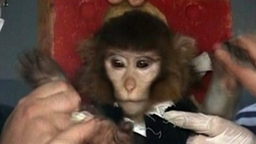 Con khỉ được Iran thông báo đưa lên vũ trụ hồi tháng 2 năm nay. Ảnh: AP