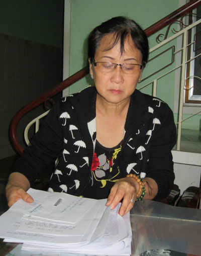 Bà Tú với tập giấy nhận nợ số tiền 25 tỉ đồng của vợ chồng bà Liễu