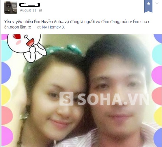Trên trang cá nhân của anh chàng cũng không thiếu những "lời có cánh" dành cho "vợ yêu": "Ánh mắt và đôi môi đó, nói những lời abcd...mà anh không thể quên được."