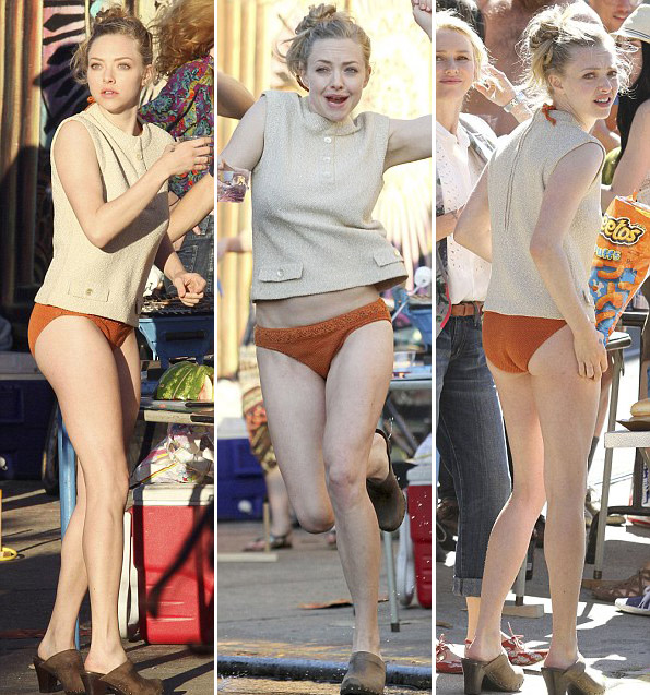 Nữ diễn viên xinh đẹp Amanda Seyfried không ngại cởi bỏ quần dài, tung tăng vui đùa cùng các bạn diễn khi quay phim mới.